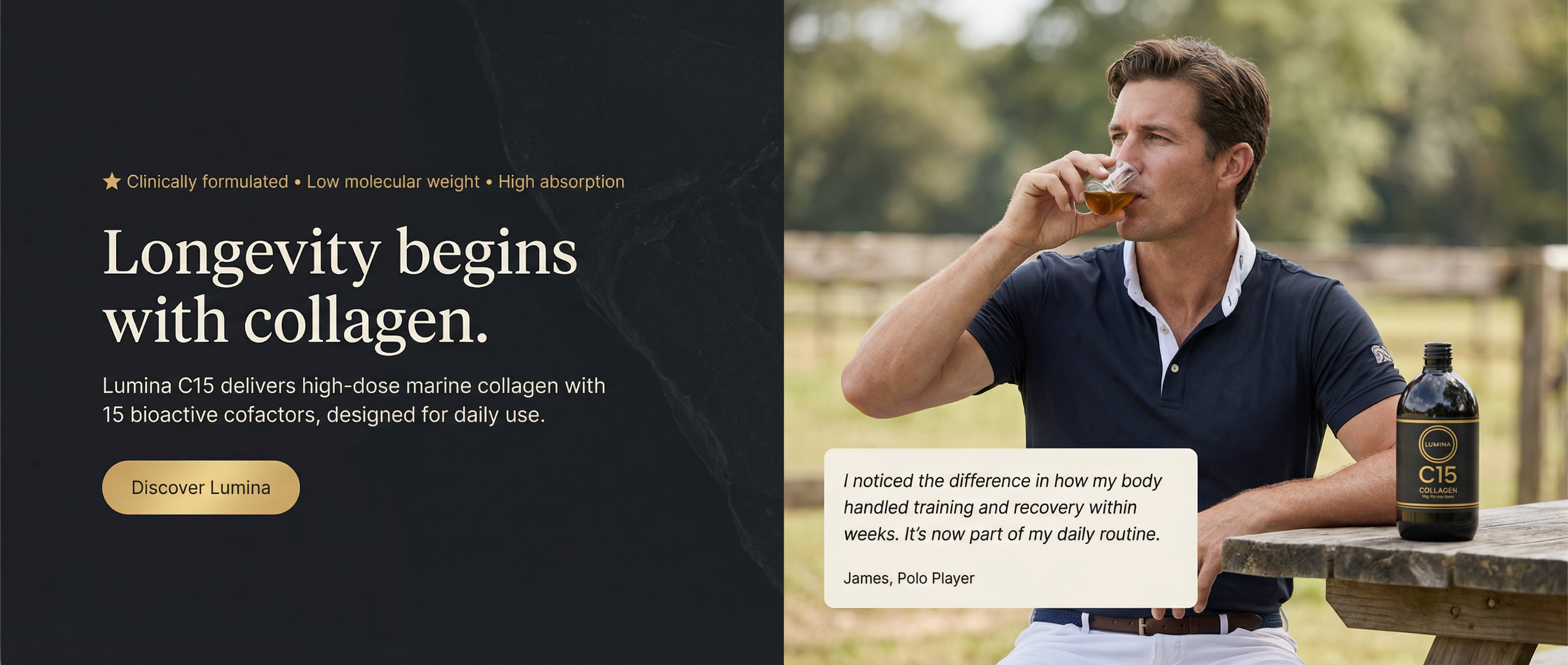 Polo and heritage sports place repeated load on joints, tendons, and connective tissue. Lumina C15 is designed to support tissue resilience, recovery, and durability over time, making it suitable for athletes who prioritise consistency and longevity rather than short-term performance aids.