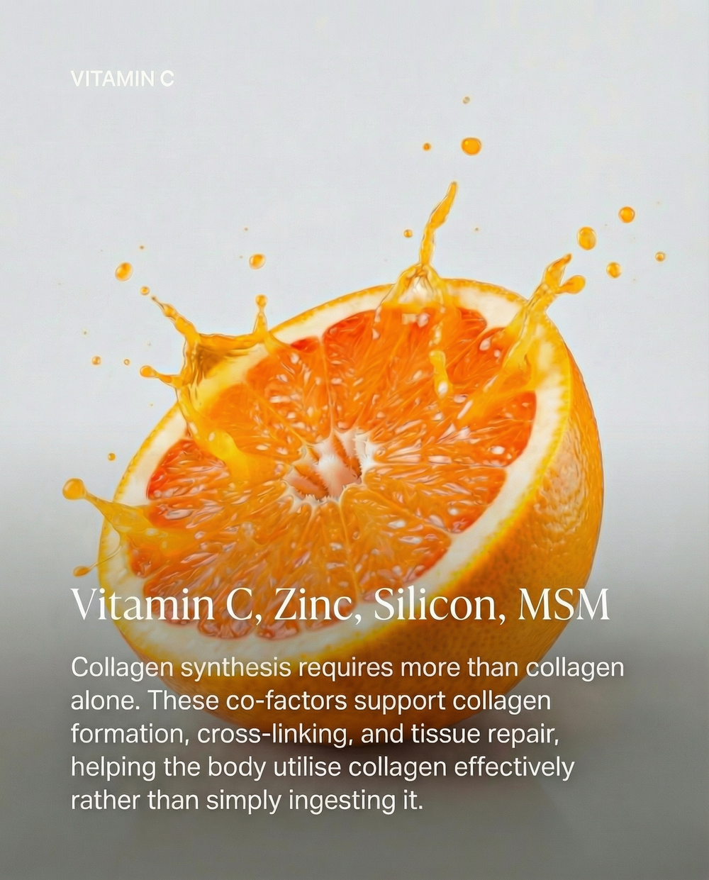 A single 25 ml daily dose delivers 15,000 mg of hydrolysed marine collagen, alongside selected co-factors and antioxidants.