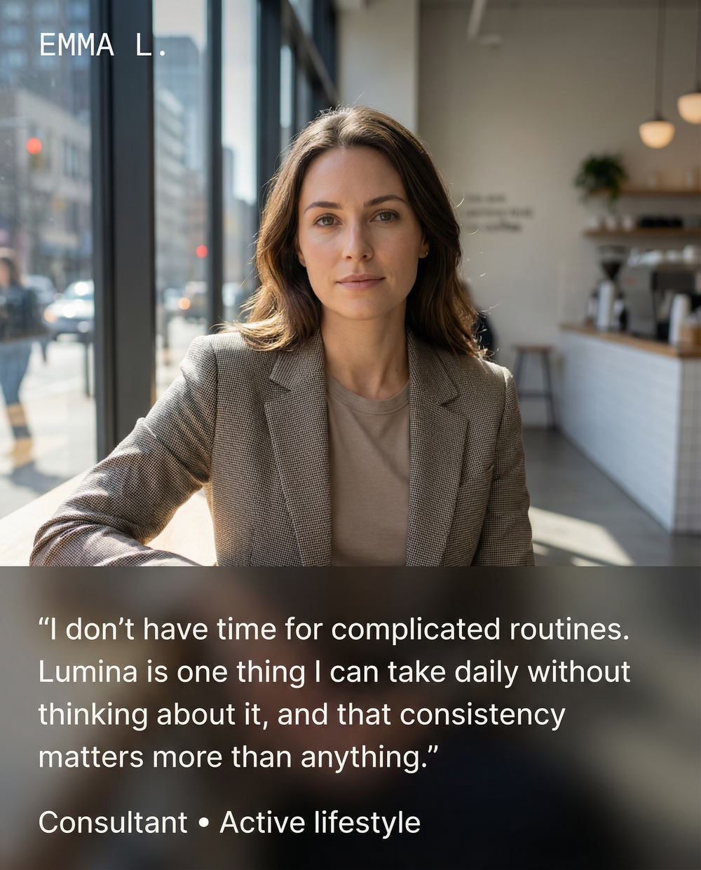 Lumina fits into my routine easily and supports joints and recovery without adding another supplement to manage.”