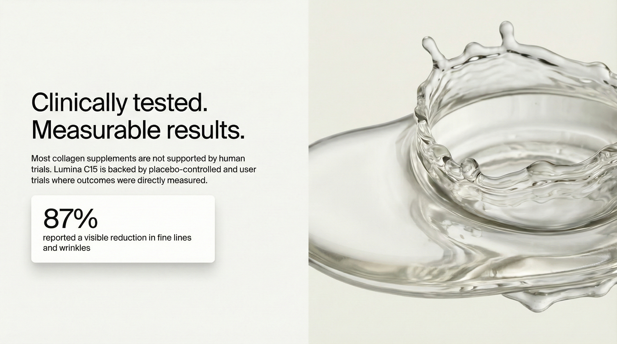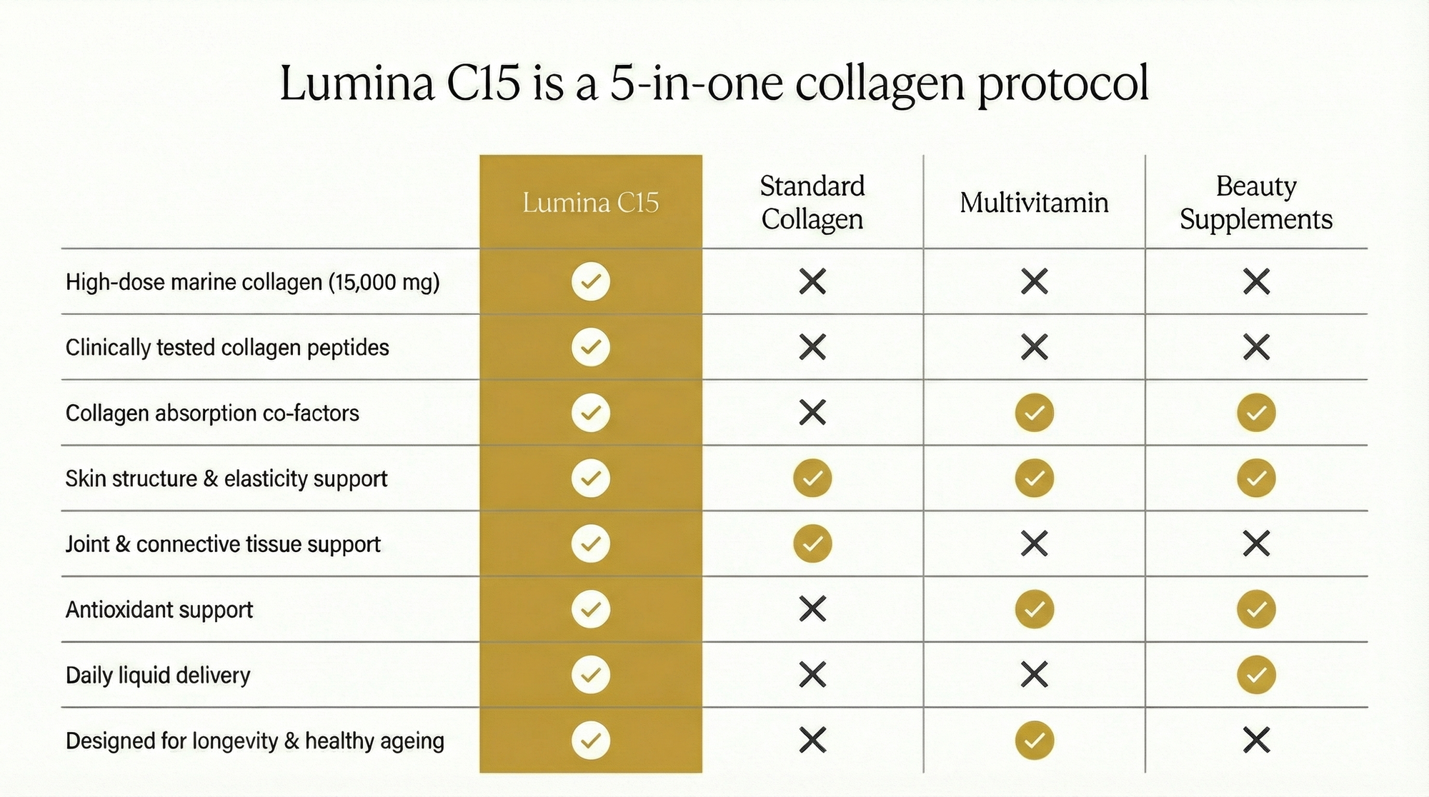 Unlike standard collagen, Lumina C15 is engineered to be absorbed.