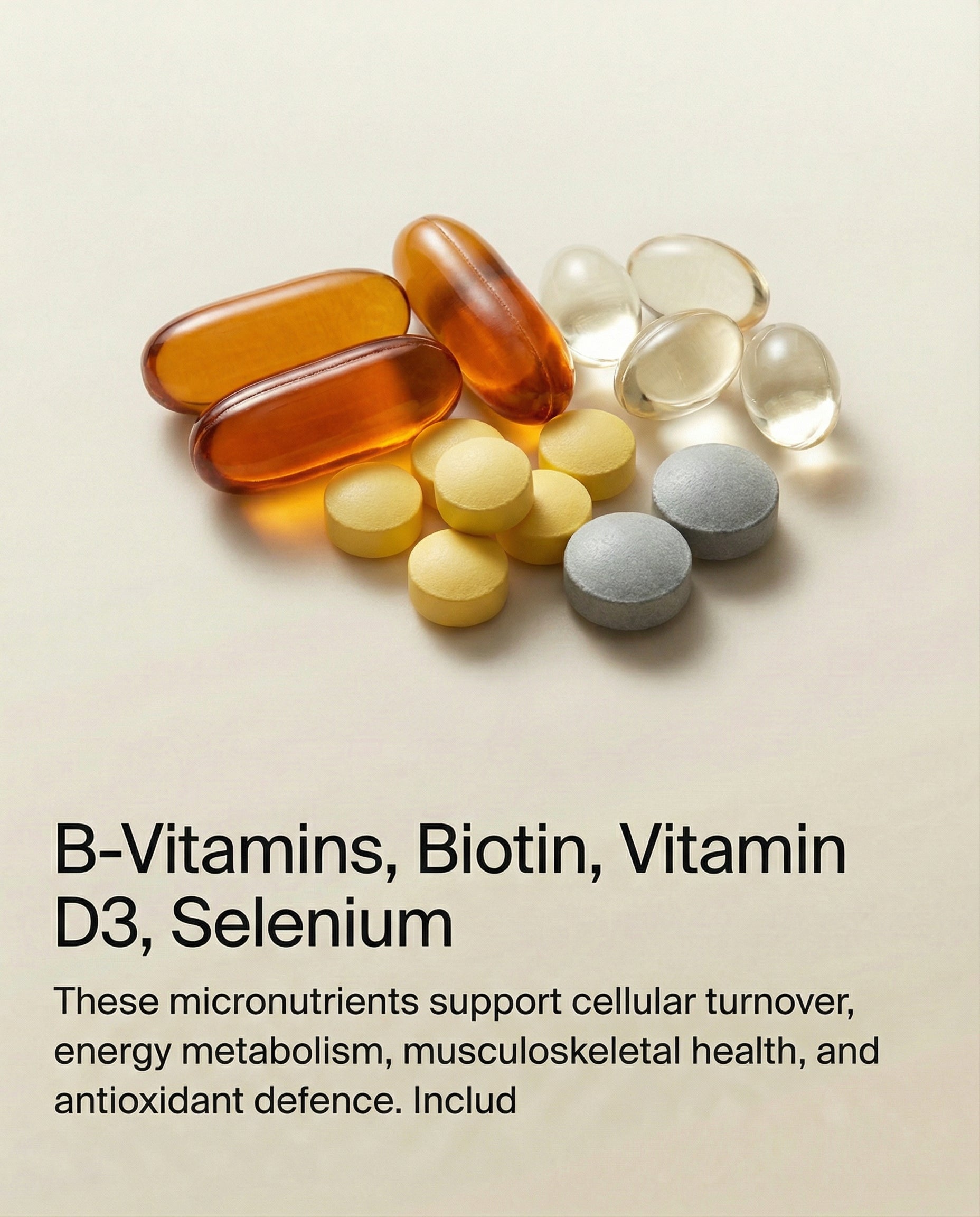 - Longevity support Essential cofactors support collagen synthesis and long-term connective tissue health.*